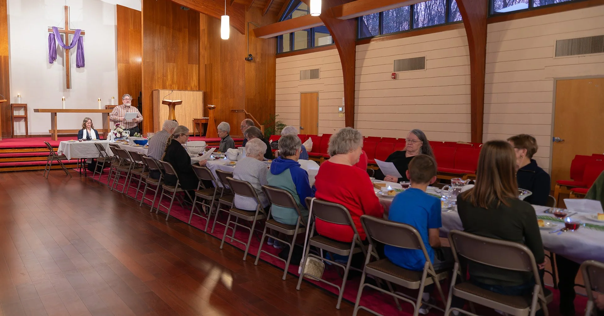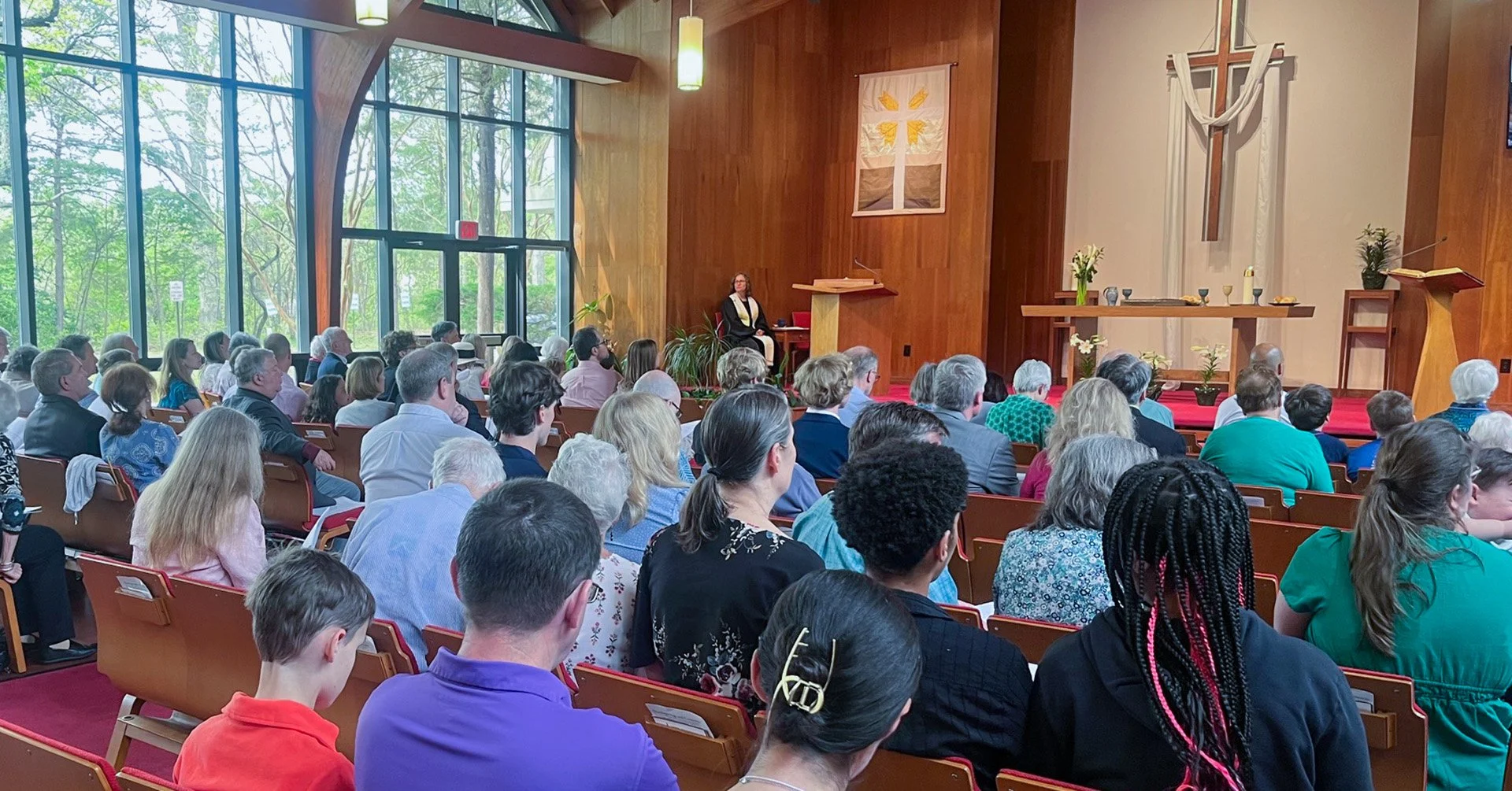 Join us for worship in our beautiful, window-lined sanctuary on Sundays at 10:15 a.m. with coffee and conversation in our social hall after the service. All are welcome in worship.